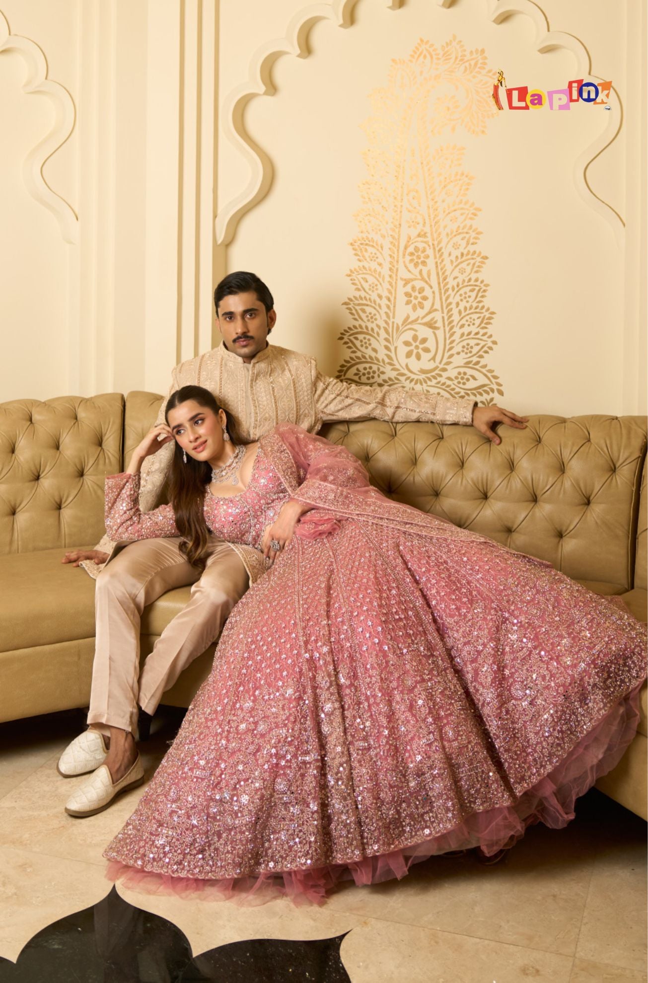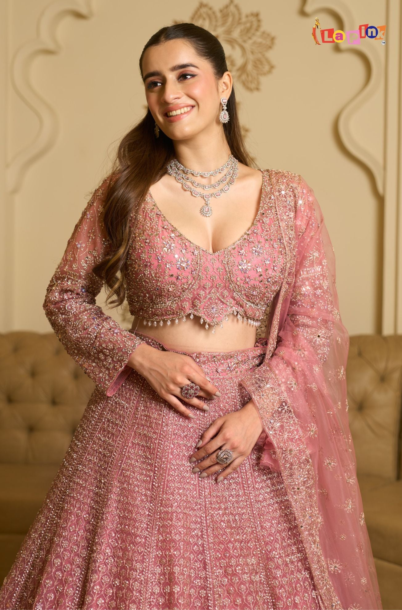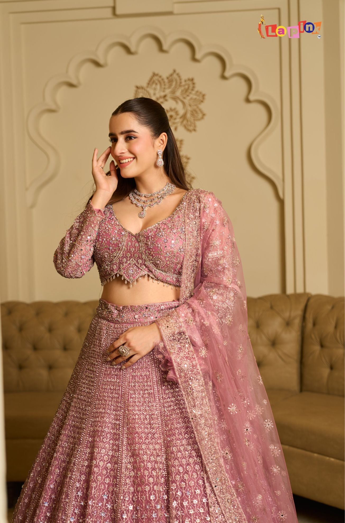 This party wear lehenga set is crafted in soft net fabric and detailed with sequins and mirror embroidery spread across the outfit for a well-balanced finish. The structured lehenga and blouse create a flattering silhouette, while the coordinated dupatta completes the look with ease. Designed for special occasions and celebrations, this set offers a comfortable fit along with detailed craftsmanship, making it suitable for long hours of wear without compromising on style.