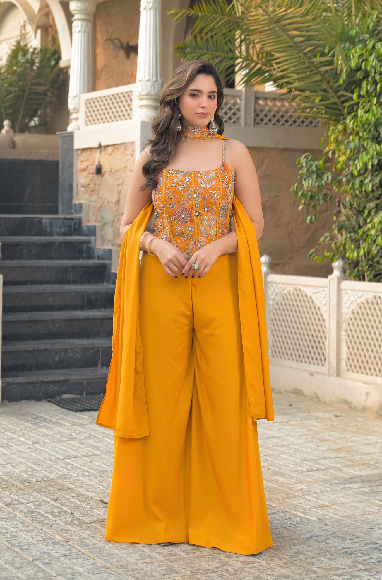 Corset Plazzo Set with Neck Dupatta