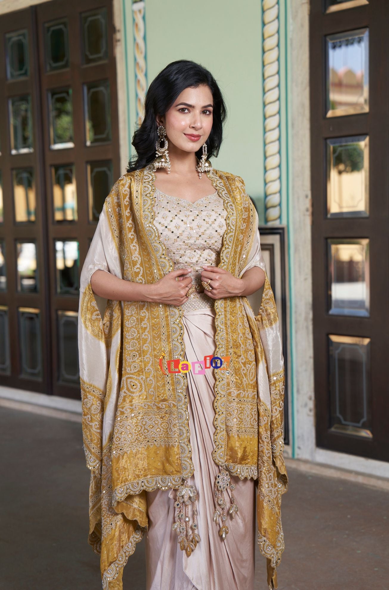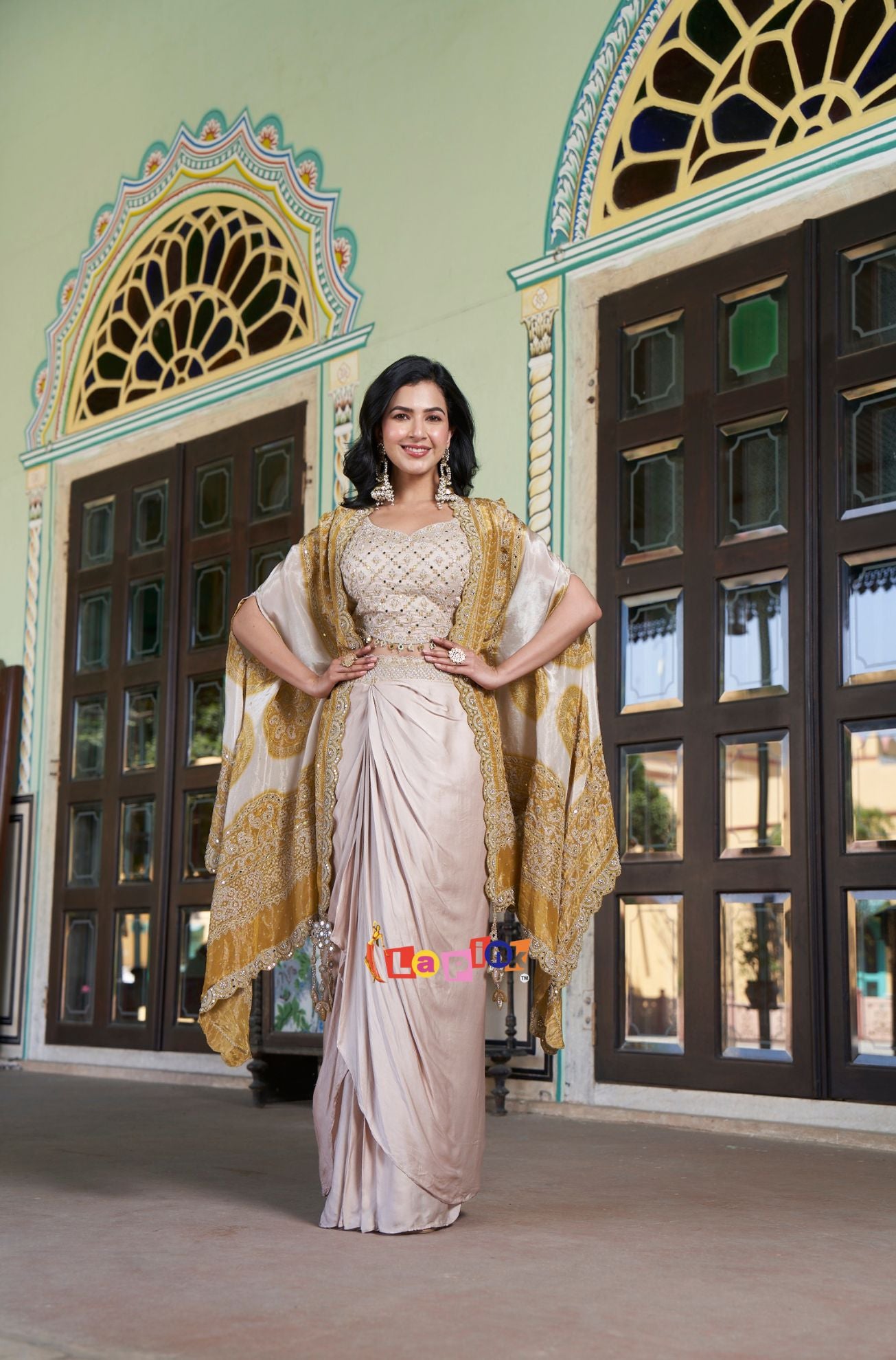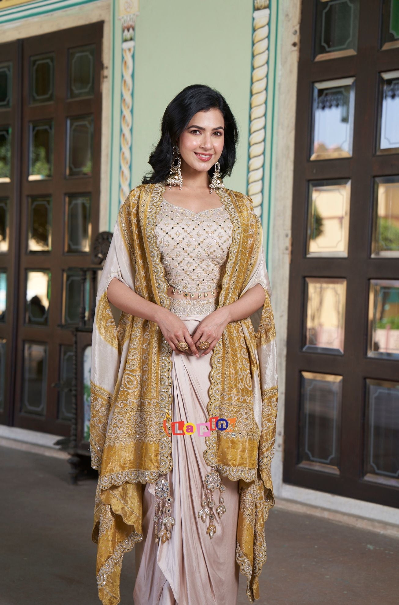 Designer Crop Top and Skirt Outfit with Shrug