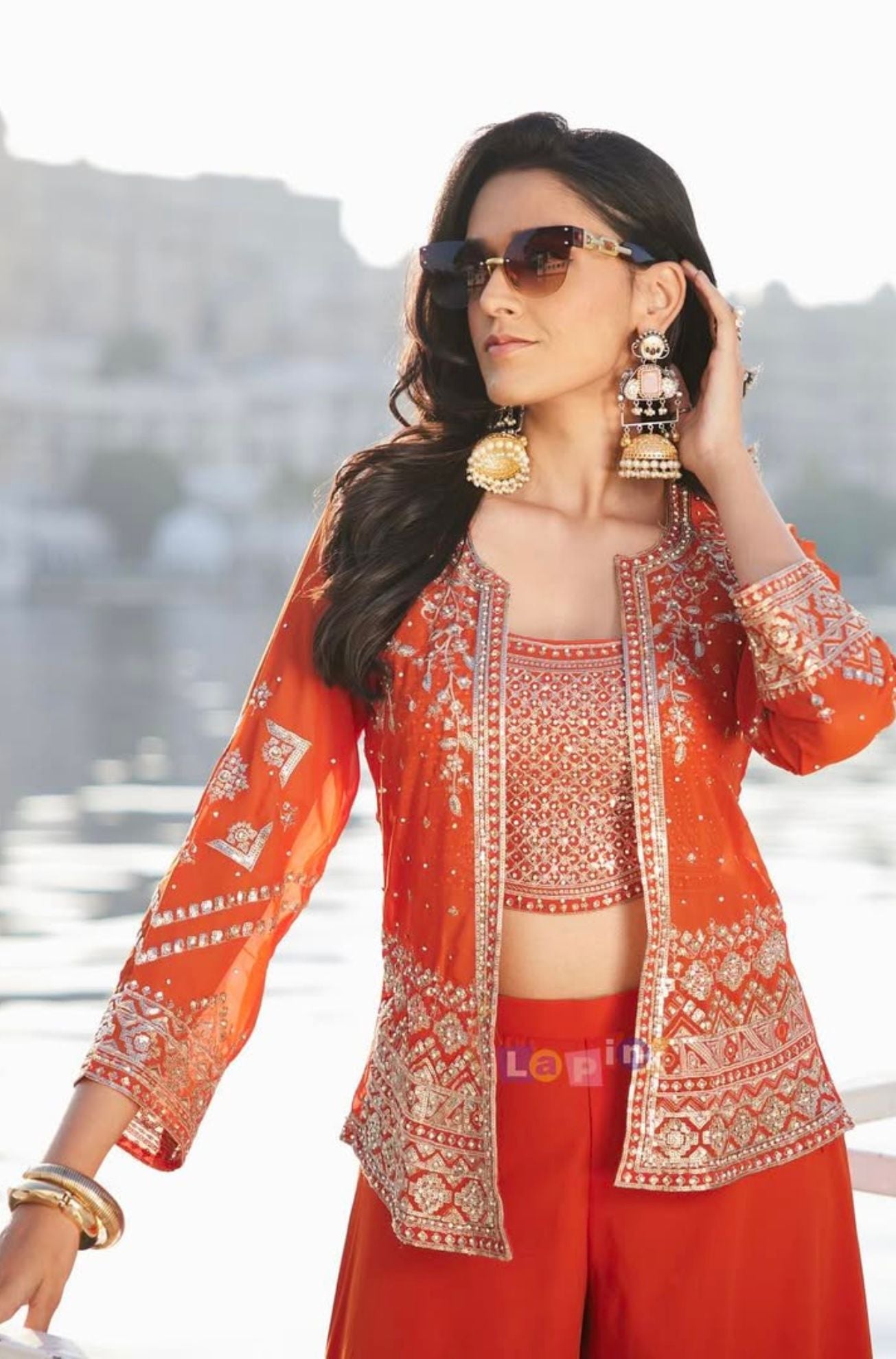 Fabric: Viscose with thread, sequin, and stone work