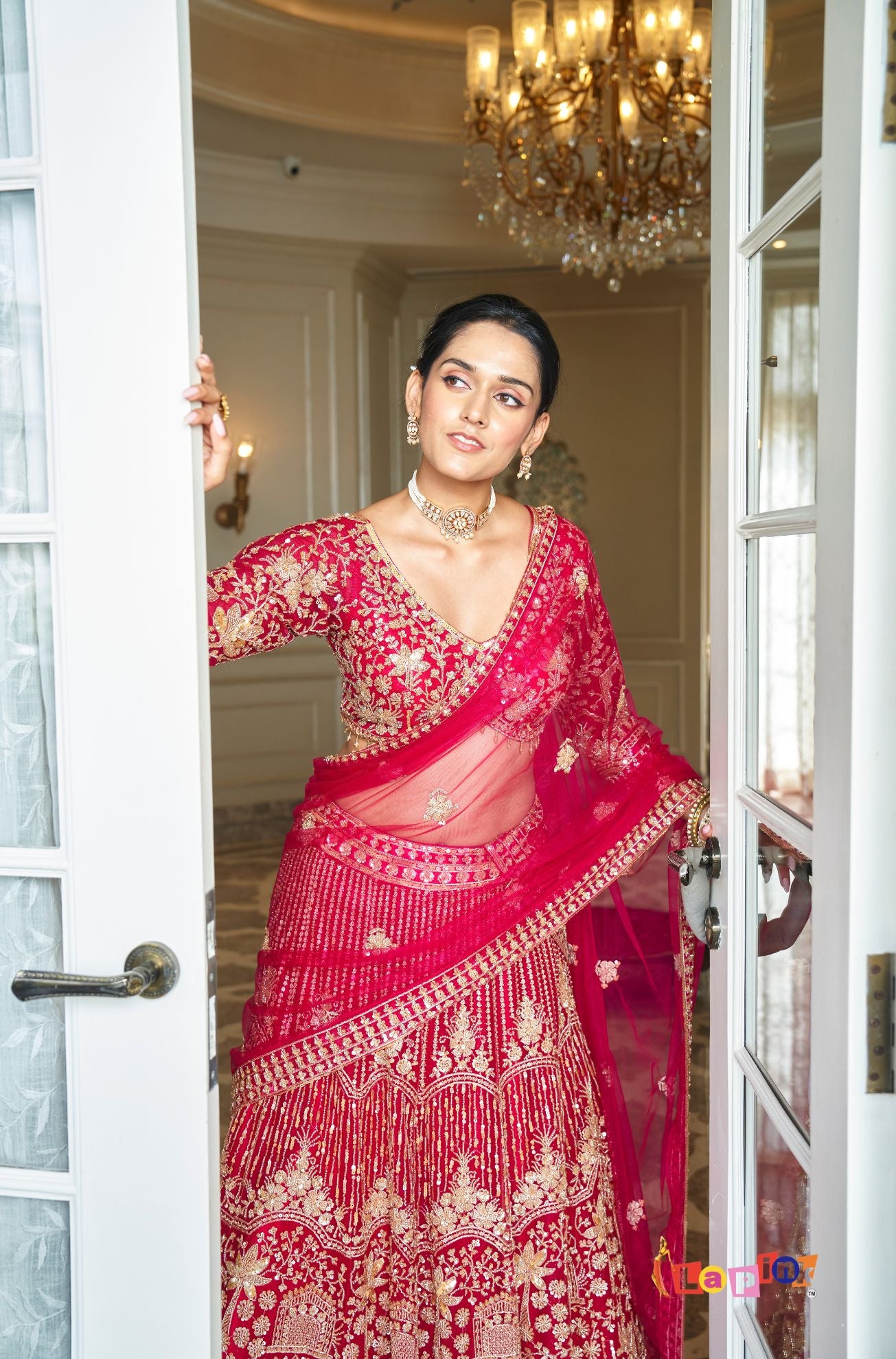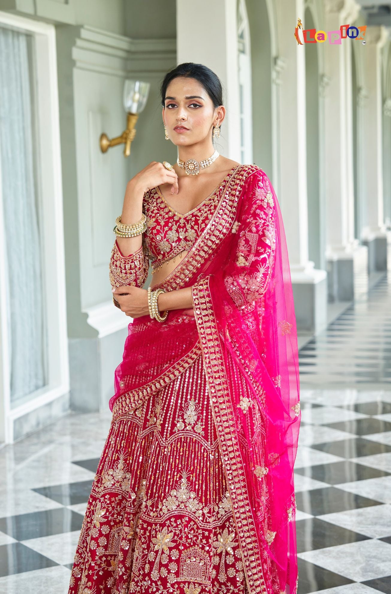 This three-piece outfit features a graceful silhouette and detailed craftsmanship that adds richness to the overall design. The use of fine sequence and piping work enhances its look, making it a suitable choice for traditional gatherings and celebrations.