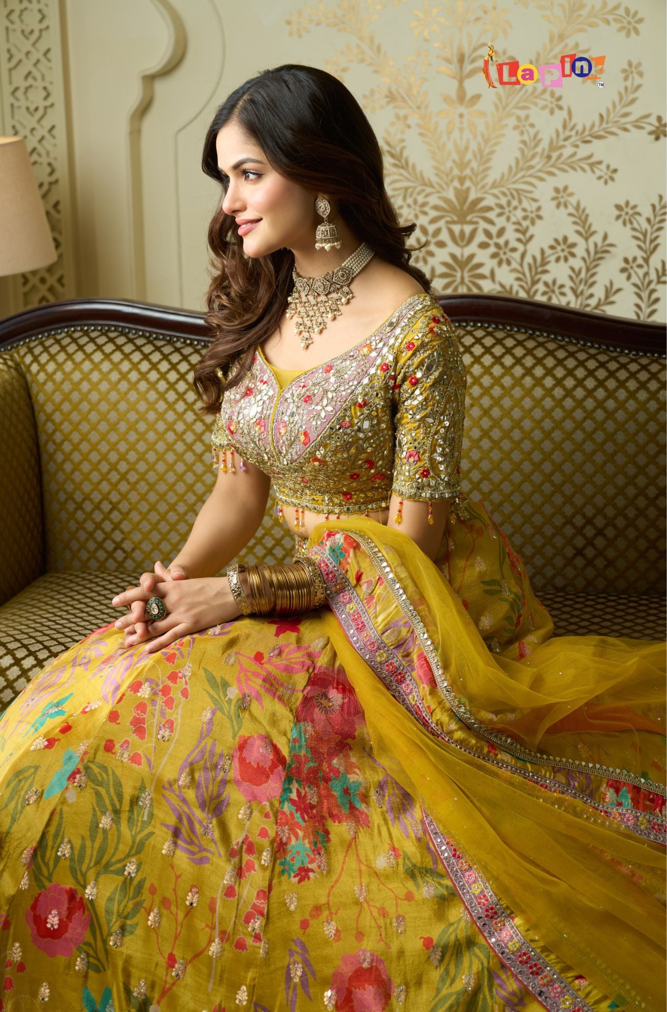 This designer printed lehenga set is crafted on rich shimmar fabric and highlighted with multi-embroidery featuring mirror and stone work for a detailed and refined finish. The printed lehenga adds visual depth, while the coordinated blouse and lightweight net dupatta complete the set neatly. Designed for festive and celebration wear, this outfit offers a balanced mix of detailed work and comfortable styling, making it suitable for long hours of wear at special occasions.