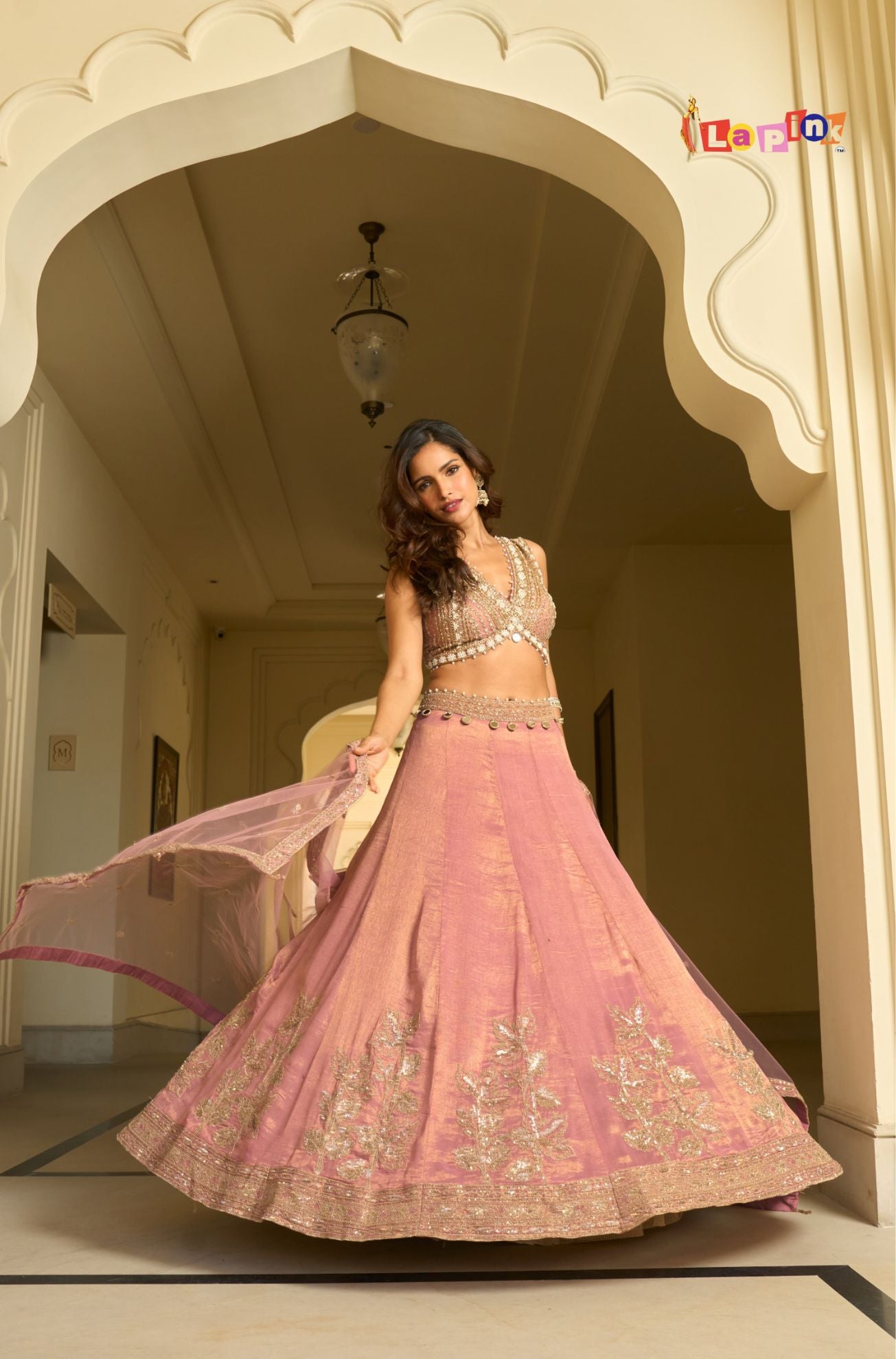 This designer lehenga set is crafted on shimmar fabric and detailed with hand embroidery that adds a refined and well-finished look to the outfit. The lehenga offers a graceful fall, while the matching blouse complements it with coordinated detailing. The net dupatta completes the set with a light and balanced layer. Suitable for festive events and wedding functions, this outfit is designed to give a polished appearance while remaining comfortable for extended wear.